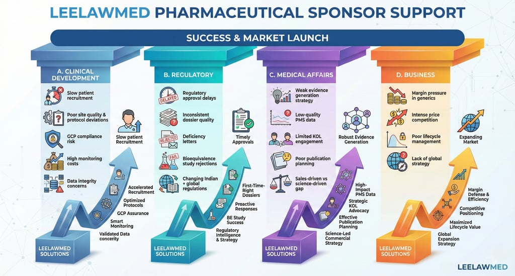 Pharmaceutical sponsors face mounting challenges, including regulatory scrutiny, rising development costs, competitive generics pressure, and global compliance expectations.